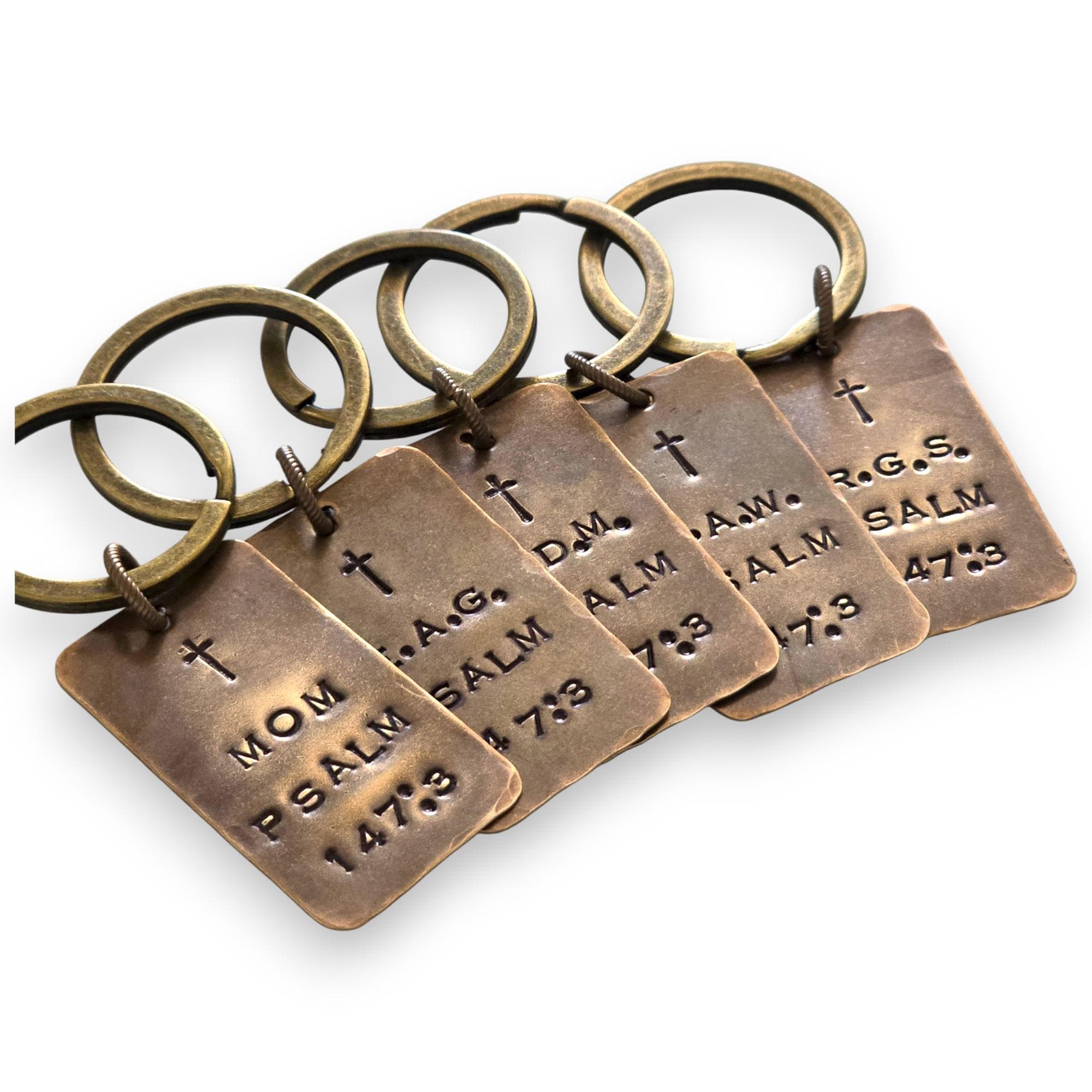 Each letter is stamped one at a time by hand. Variations in spacing, alignment, or depth are natural and add character to your one-of-a-kind piece.