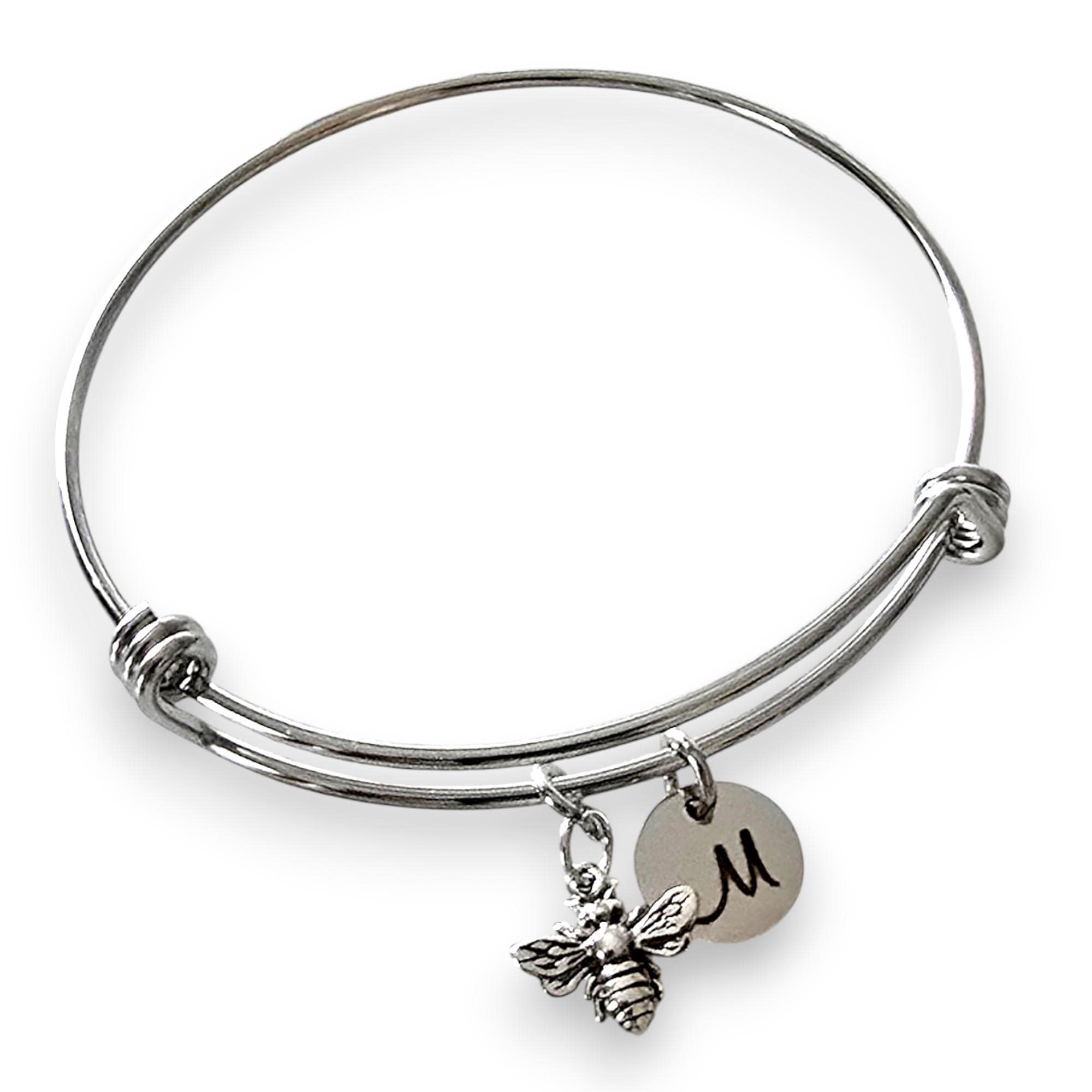 Silver Bee Bracelet, Gold Bee Bracelet, Initial Bracelet Gold, Initial Bee Bracelet, Bumble Bee Bracelet, Honeybee Jewelry