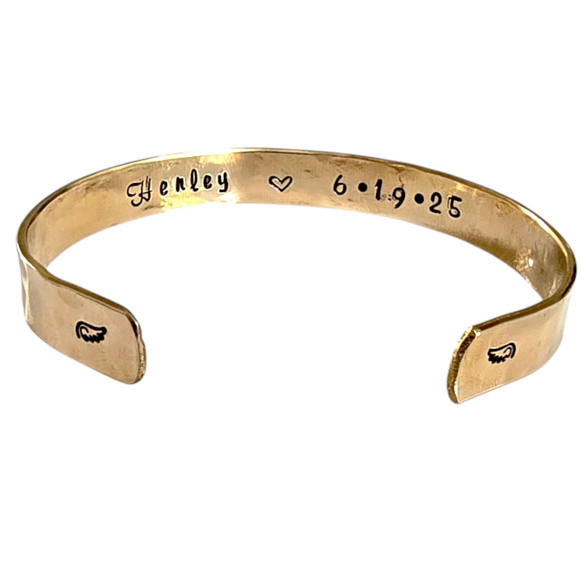 Each letter is stamped one at a time by hand. Variations in spacing, alignment, or depth are natural and add character to your one-of-a-kind piece.